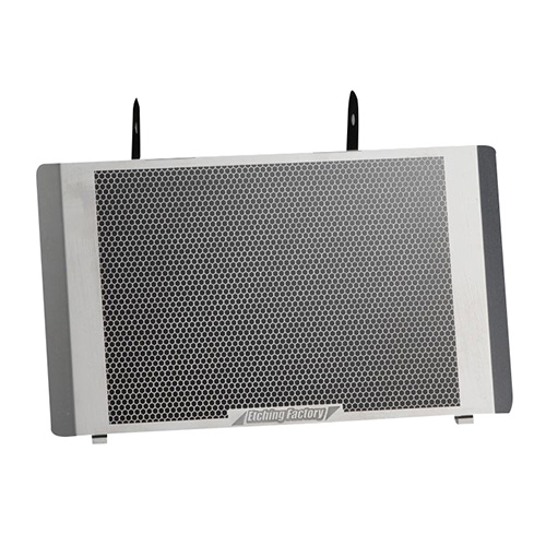 エッチングファクトリーは主にオートバイ用のラジエーターコアガードを扱う、冨士精密工業株式会社が展開するブランドです。 フォトエッチング技術を駆使し、オートバイの性能とデザイン性を高める製品を提供。 20年以上にわたり、鈴鹿8時間耐久レースを通じて製品開発を行い、その成果を製品に反映しています。