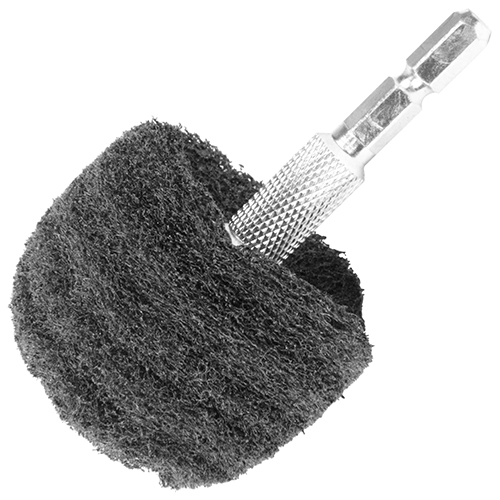 特長:直径50mm頭なので小さく隙間に入れます。 ひつこい汚れや、サビ等を電気ドリルの回転力を使って落とします。 弾性があり母材をキズつけにくい素材です。 6.35六角軸なのでインパクトDVでも使用できます。