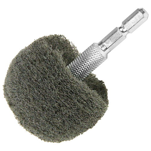 特長:直径50mm頭なので小さく隙間に入れます。 ひつこい汚れや、サビ等を電気ドリルの回転力を使って落とします。 弾性があり母材をキズつけにくい素材です。 6.35六角軸なのでインパクトDVでも使用できます。