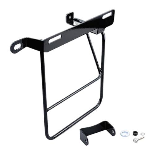 特長:従来のサポートに比べて下側に100mm伸ばすことで大型のバッグの使用時も安定した取付が可能に。大型化に合わせ、従来品よりも強度を重視した設計。またバッグの固定ベルトを通すためのループを配置したプレートを取り付けることでキャリアの有無に関わらずバッグを固定出来ます。
