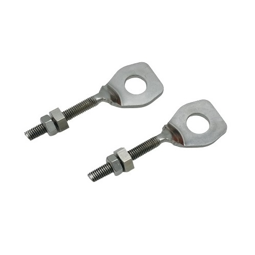 特長:純正形状を採用したステンレス製チェーンアジャスター。 ステンレス製ナットも対辺12mm/10mmで純正同寸法。