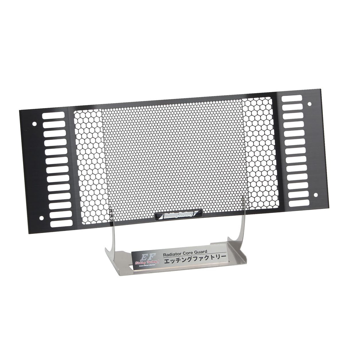 エッチングファクトリーは主にオートバイ用のラジエーターコアガードを扱う、冨士精密工業株式会社が展開するブランドです。 フォトエッチング技術を駆使し、オートバイの性能とデザイン性を高める製品を提供。 20年以上にわたり、鈴鹿8時間耐久レースを通じて製品開発を行い、その成果を製品に反映しています。