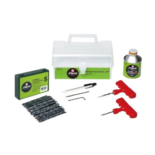 特長:未加硫ゴムが加硫接着剤(スーパーバルカーンG)を使用する事でタイヤと一体化して強力に接着します 特殊ナイロン繊維で構成されているので、挿入時に切れません タイヤ販売店や自動車整備工場向けの初期導入セット