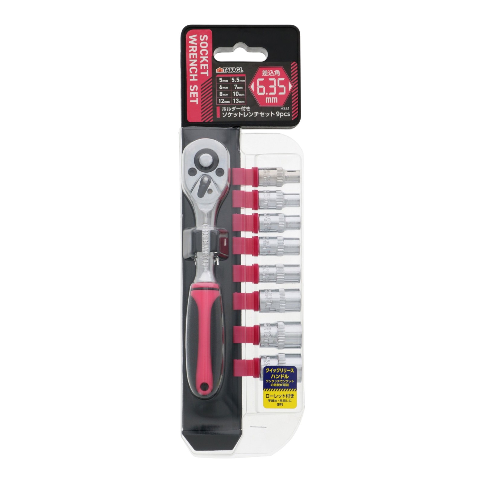 ホルダー付 ソケットレンチセット 9pcs 6.35mm角 (ミリ) HSS-1ブランド:TAKAGI(タカギ)