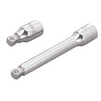 特長:深くて狭い箇所の作業など、ハンドルが操作しにくい時、ソケットを延長させるために使用します。凸ドライブを球状加工し、10度傾けても使用できます。・手工具用。