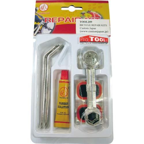 セット内容/付属品:・パッチ5枚 ・ラバーセメント ・ミニやすり ・ボックスレンチ ・メタルタイヤレバー2本