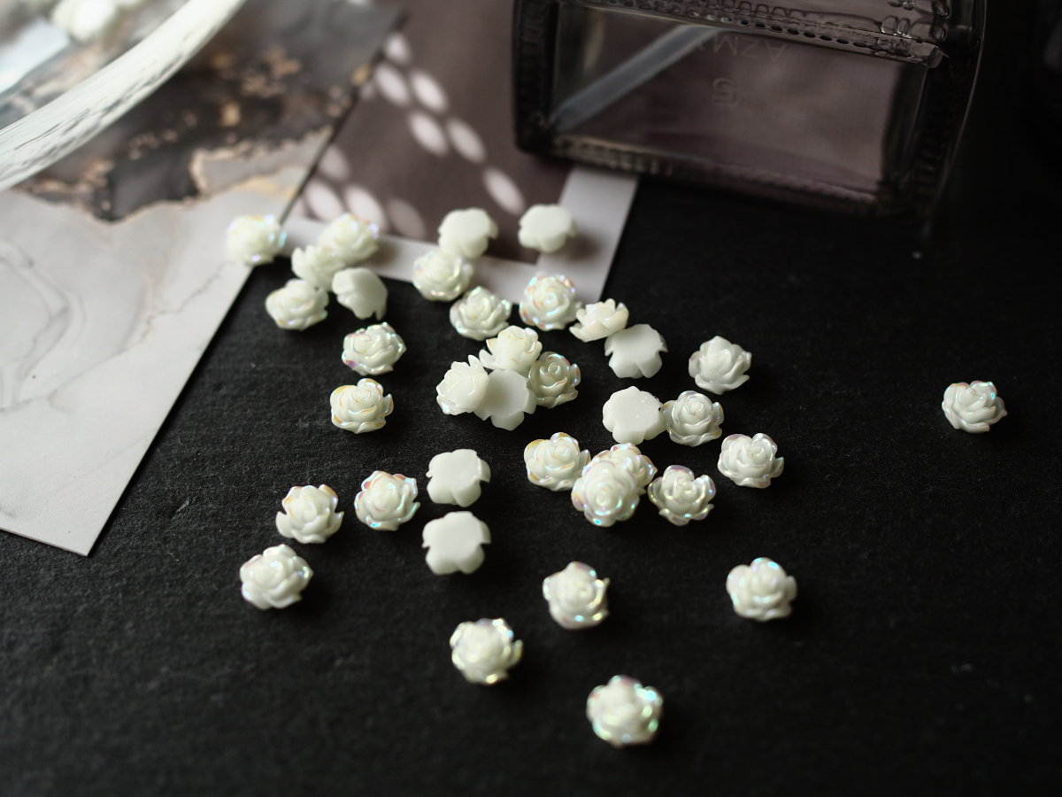 商品名:カボション ネイルパーツ 薔薇 バラ 白 ホワイト ラメ オーロラ 20個入り