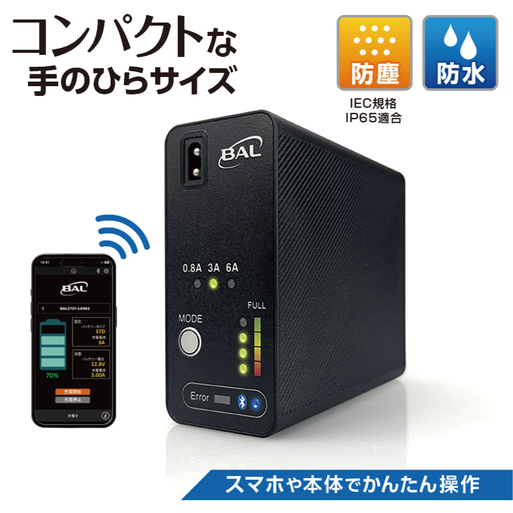 バッテリーチャージャー 12V BAL コンパクトチャージャー 6A アイドリングストップ車用バッテリー リン酸鉄リチウムイオンバッテリー対応