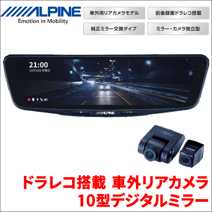 10型デジタルミラー ドライブレコーダー搭載 車外用リアカメラモデル DVR-DM1000A-OC ALPIINE 前後録画ドラレコ搭載 純正ミラー交換タイプ