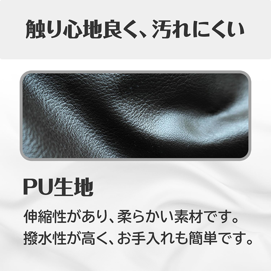 ●表面はPU生地を使用しているので触り心地が良く、汚れにくい仕様になっています。
