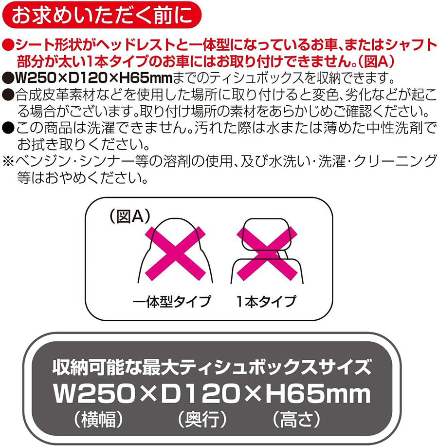 ●車のヘッドレストにも取り付けできるストラップ付きです。