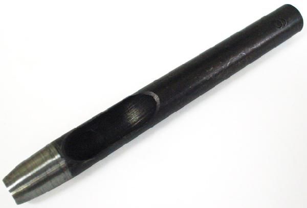 直径6mmの穴をあけるためのハガネでできたアナログライクな穴あけ工具です ハトメ抜きはその名の通りハトメ取り付けのために事前に穴あけするための道具ですが、カシメ取り付けにもお使いいただけます。