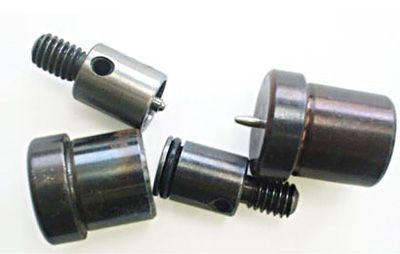 頭径13mmの小さいバネホックNo2をハンドプレス機で取付けるための治具パーツです。バネホックNo5は、スプリングホックなどとも呼ばれるバネの入ったホックのこと。大量にバネホックNo5を取付ける必要のある方は、ハンドプレス機にこの打駒をセットしていただき、軽く失敗いらずで加工することができます。