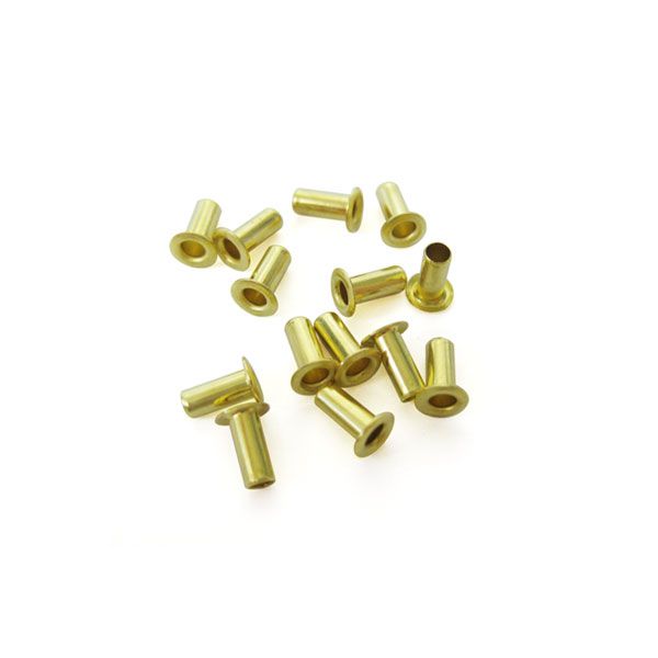 ハトメの筒の部分が直径2mmハトメ。金属の厚みがありますので、取付けた後の穴の内径は約1.6mmとなります。高さが5mm。真鍮製で座金は付属されません。ハトメ本体のみでお使いいただく電気ハトメです。3mm厚の物にご使用いただけます。