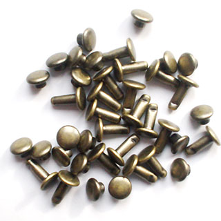 | 足の種類:両面足長 品 名:特小カシメ サイズ:頭4.6mm 幅4.6mm 高7mm 材 質:真鍮 メッキ:ニッケル・キリンス処理・アンティーク・黒ニッケル カシメは頭(メス)と足(オス)で一対、布や革を止める金具です。 布や革に、カシメの足を通る穴(多くは2mmないし3mm)をあけ、挟みこむようにして頭をかぶせ、足を潰してカシメをとめます。 リベットやハトメと違い、カシメは足がクルッとヒックリ返るわけではありません。 被せた頭の中で足がグシャッと潰れ止まっています。 「カシメがすぐ外れます」とのご質問いただくことがありますが、それはカシメている(足を潰している)のではなく、ただ挟んで頭を被せているだけの状態だからです。 足が潰れていない状態は「カシメている」になりません。 専用の工具(手打ち棒かハンドプレス)で上からしっかりと叩いてください。 |