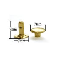 頭(メス)の直径7mm、足(オス)の長さが7mmの真鍮製の中カシメの足並です。真鍮製。片面タイプ。足軸径2.7mm。革や布の厚みが厚み5mm程度のものにお使いください。5mm以上の場合は<a href="https://store.shopping.yahoo.co.jp/partslabo/b2aae3c65a5.html">長足</a>タイプをご検討ください。