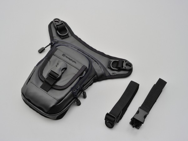 身の周りのものをすっきり身に付けられるホルスタータイプのバッグ。