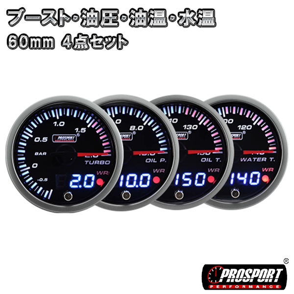 4連セット ブースト・油圧・油温・水温 メーター 60パイ PROSPORT デジタル表示付き プロスポーツ 60mm 60ミリ 60Φ カスタム パーツ 車
