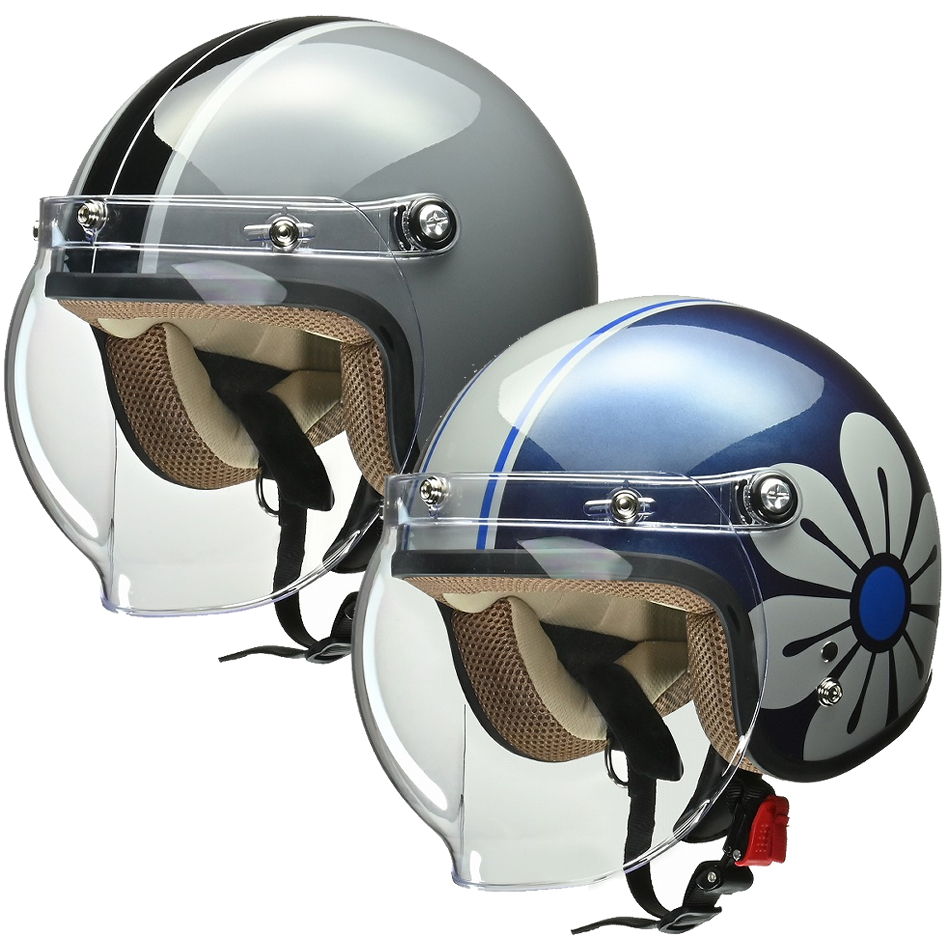 女性に人気のスモールロージェットに開閉式バブルシールドを装備したモデル。バブルシールドはデザイン 性に優れているだけでなく眼鏡やサングラスとの干渉を避け、巻き込み風を最小限に抑えます。