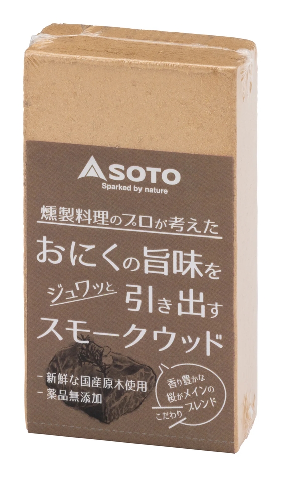 肉料理に最適な燻煙材の木を粉末にし、燻製料理のプロ監修のもと独自ブレンドし固めた製品です。