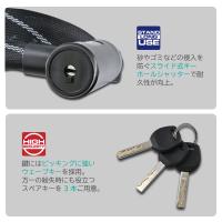スチールワイヤーにスチールリンクを被せた二重構造のケーブルロック。車体に傷がつきにくいメッシュカバーを装備。軽量で使い勝手の良いリンクロックです。