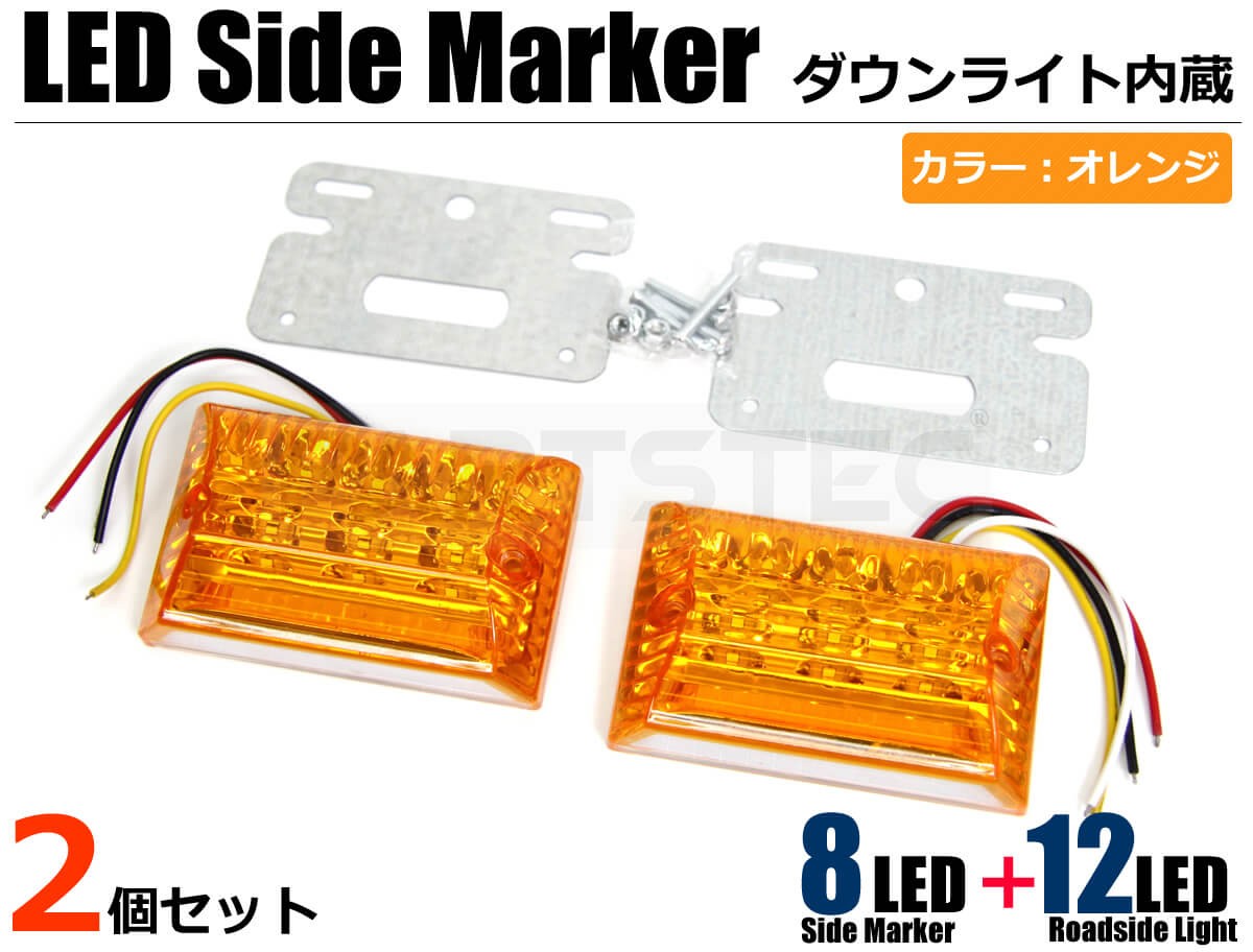 I-3「在庫処分」トラック用 LED サイドマーカー アンバー ホワイト 2個 ダウンライト付 24V 汎用 外装パーツ 角型 サイドマーカー 大型 トラック / 27-276x2