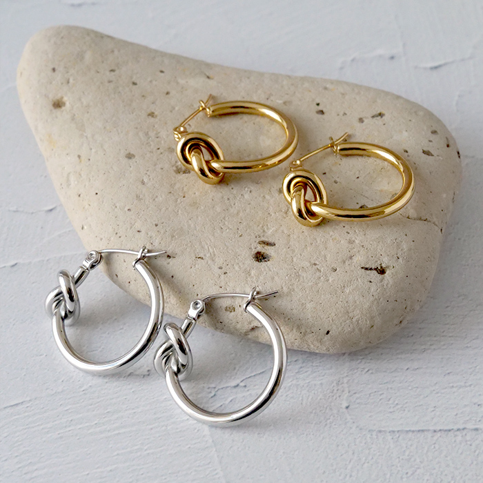 メール便送料無料 サージカルステンレス 177. ワンノット フープピアス ゴールド シルバー スタッド 金属アレルギー対応