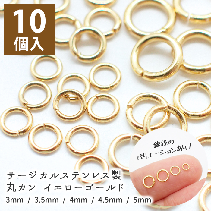 サージカルステンレス丸カン (20) ゴールド サイズ8種類 10個売り 金属アレルギー対応 ステンレス マルカン パーツ 金具 留め具 ポイント利用