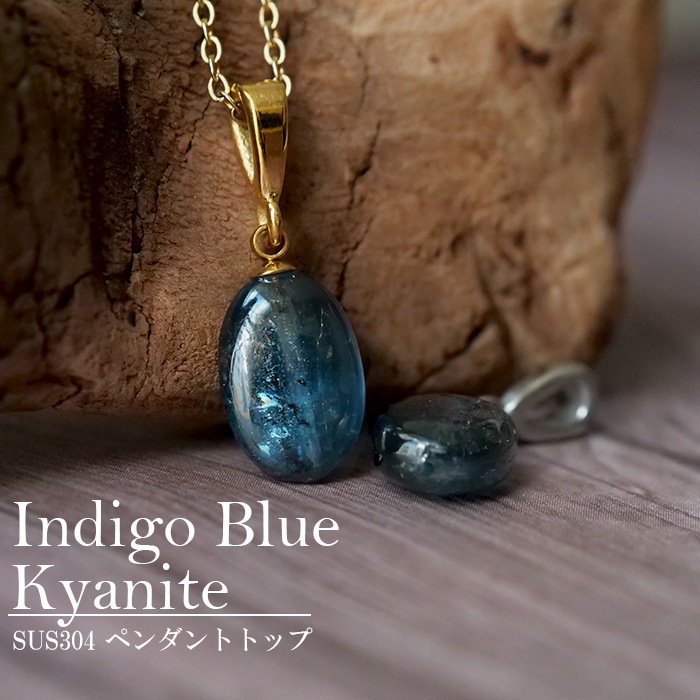 インディゴブルーカイヤナイト ペンダントトップ 天然石 タンザニア産 日本製 9月誕生石 ブルー 青 サージカルステンレス 金属アレルギー対応