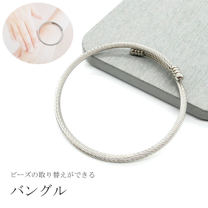 ステンレス製 着せ替え ブレスレットパーツ 形状記憶バングル( シルバー )ヨーロピアンビーズ ハンドメイド