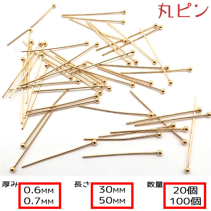 丸ピン サージカルステンレス316 基礎パーツ【50mm 30mm】【20本】厚み0.6mm 0.7mm ゴールド 金