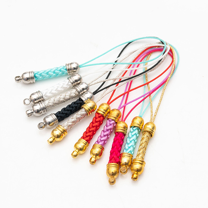 ストラップ (18) カン付きゴールド根付紐ストラップ No.18選べる11色♪5個売り 根付紐 組紐 ストラップ パーツ キーホルダー アクセサリーパーツ 国内発送
