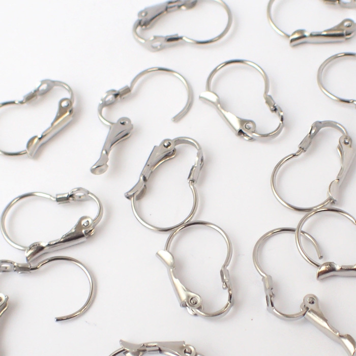 サージカルステンレス製 【シルバー】イヤリングパーツ (07) カン付きデザインレバーバックピアス 2個売り ステンレス ピアス アクセサリー