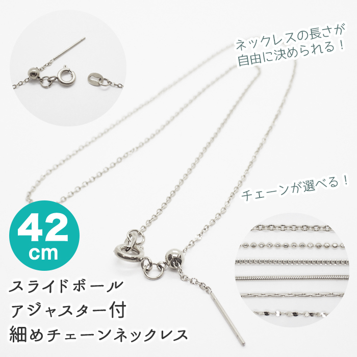 ステンレス製 スライドボール アジャスター付きネックレスチェーン 約42cm シルバー ステンレス アレルギー ネックレス アレルギーフリー ハンドメイド