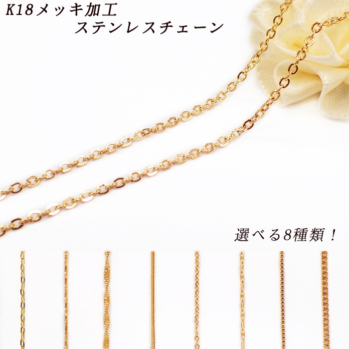 18金メッキ 高品質ステンレス製 ステンレスチェーン 全8種類 約45cm アズキ 喜平 スクリュー ベネチアン ハンドメイド 国内発送