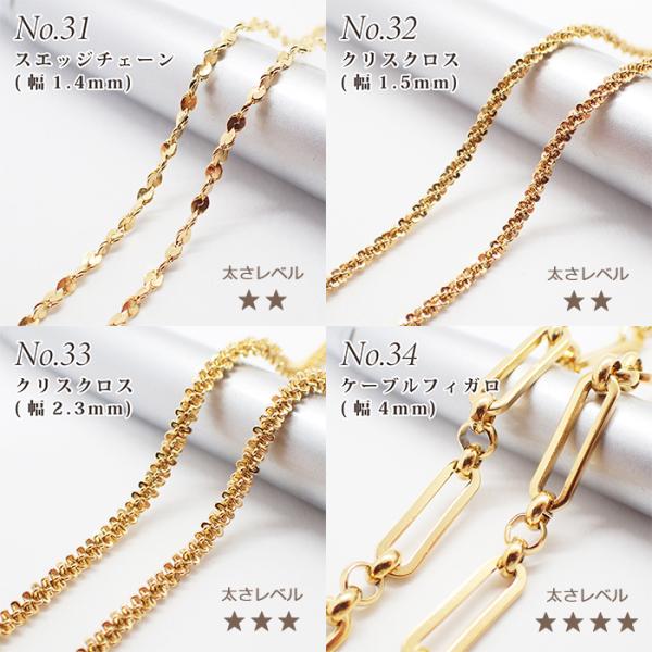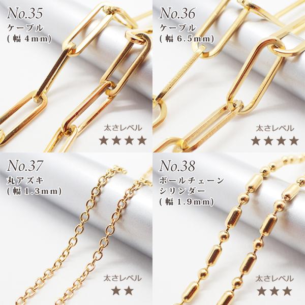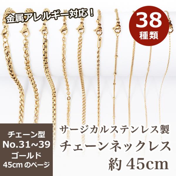 サージカルステンレス製 ネックレスチェーン 金具付 約45cm ゴールド No.31〜39のページ サージカル ステンレス アレルギー ハンドメイド 国内発送