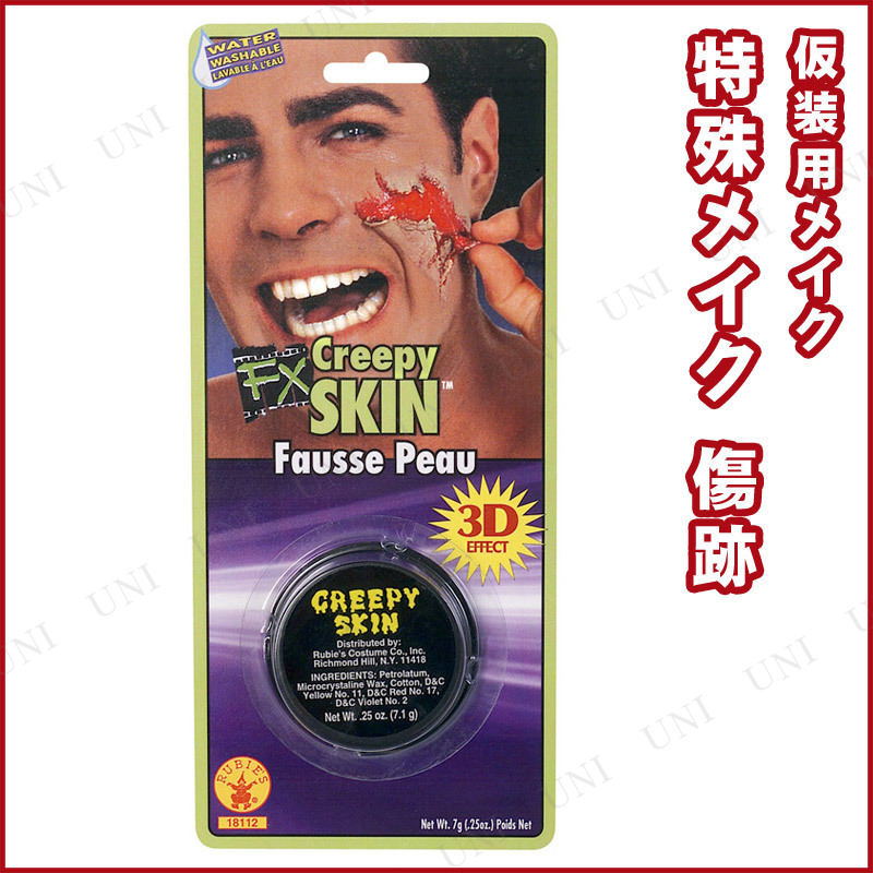 | ・対象年齢:14歳以上 ※D&Cイエロー11号(CI47000)、D&Cレッド17号(CI26100)、D&Cバイオレット2号(CI60725)が含まれている可能性があります 【使用方法】 清潔で乾いたお肌に、おしろいやベビーパウダーを塗ります。少量を指でこね、皮膚の上に置きます。押さえて、形と継ぎ目を整えます。 【落とし方】 剥いだ後、石鹸と温水で洗い流して下さい。落ちない場合はコールドクリームやベビーオイルを使用して落として下さい。 |