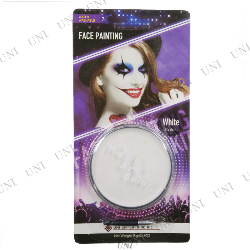 | 白色のドーラン(フェイスカラー)です。便利なブラシ付き♪ピエロ用白塗りメイクや、スポーツ観戦などのフェイスペイントにもどうぞ☆ ※パッケージの女性はあくまでイメージです。白の発色具合には多少個人差が生じます、予めご了承ください |