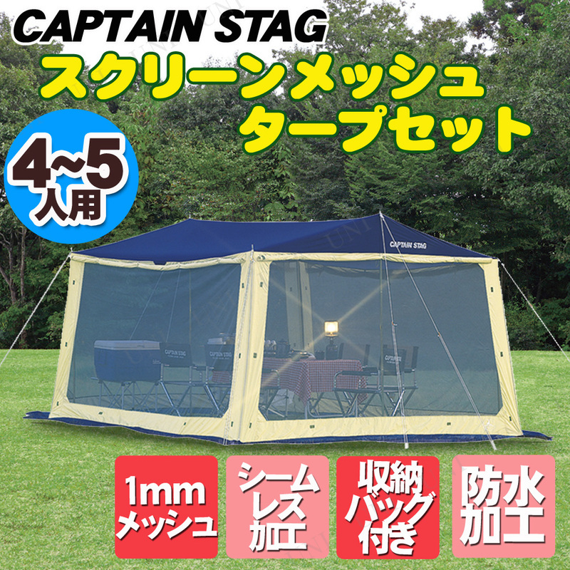 | 通気性に優れ、日差しや虫の侵入を防ぐ1mmメッシュを全面に使用したメッシュタープ。雨や風を防ぐスクリーンパネルを全面に装備し、3シーズン対応可能。全面を巻き上げれば開放的なスクエアタープに変身。両サイド面(中央部)には雨水を逃がす際に使用するフラップを装備。別売のポールを使用すれば、スクリーン(サイド2面)をひさしとしても使用可能。縫い目から雨の侵入を防ぐシームレス加工 |