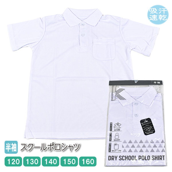 【お取り寄せ商品】 半袖 ポロシャツ スクール 学校 制服 白 白無地 ポロ 小学校 通園 通学 冠婚葬祭 ドライ キッズ ジュニア 名札テープ 【1点までメール便可】