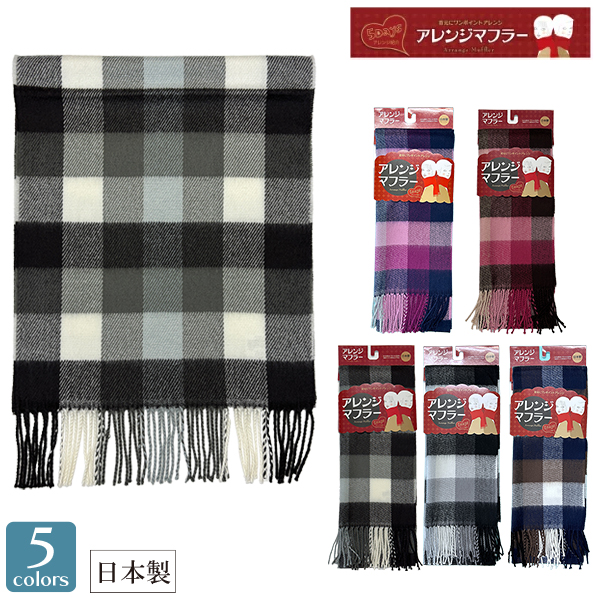 マフラー 日本製 ユニセックス 学生 レディース 婦人 メンズ 紳士 ブロック チェック アレンジマフラー ネックウォーマー 防寒 暖か 通勤 通学 ユニセックス 【1