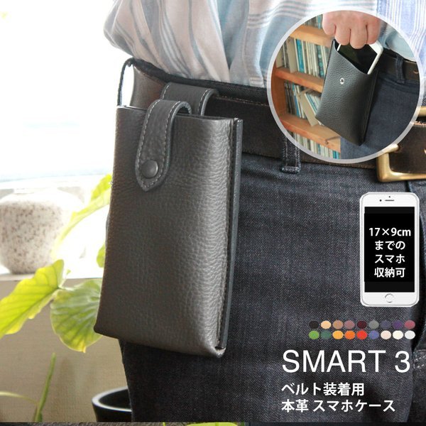 スマホポーチ メンズ 本革 スマホバッグ smart3 ベルトに装着可 本革 日本製 職人手作り 牛革 スマホケース