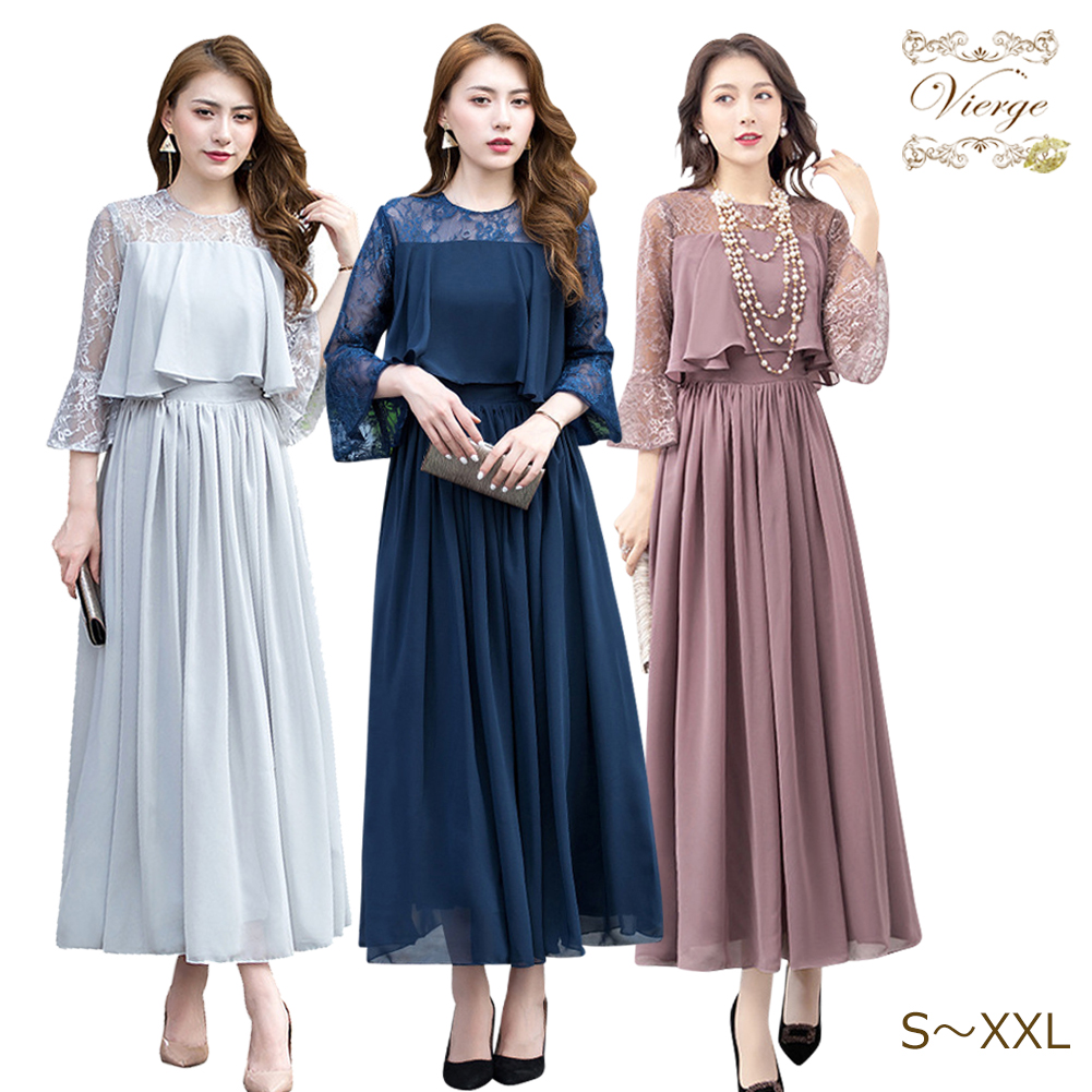 パーティードレス 結婚式 服装 袖あり ドレス ワンピース 結婚式ドレス ロングドレス フォーマルドレス お呼ばれドレス 40代 50代 60代 爆買