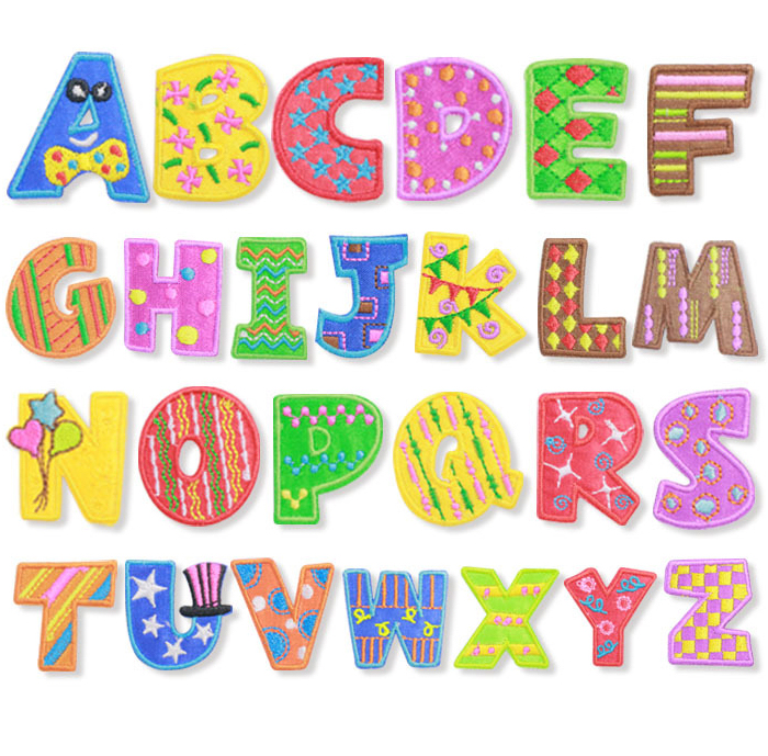 ファンシーデザイン アルファベットワッペン アルファベットアップリケ イニシャルワッペン 文字アイロンワッペン