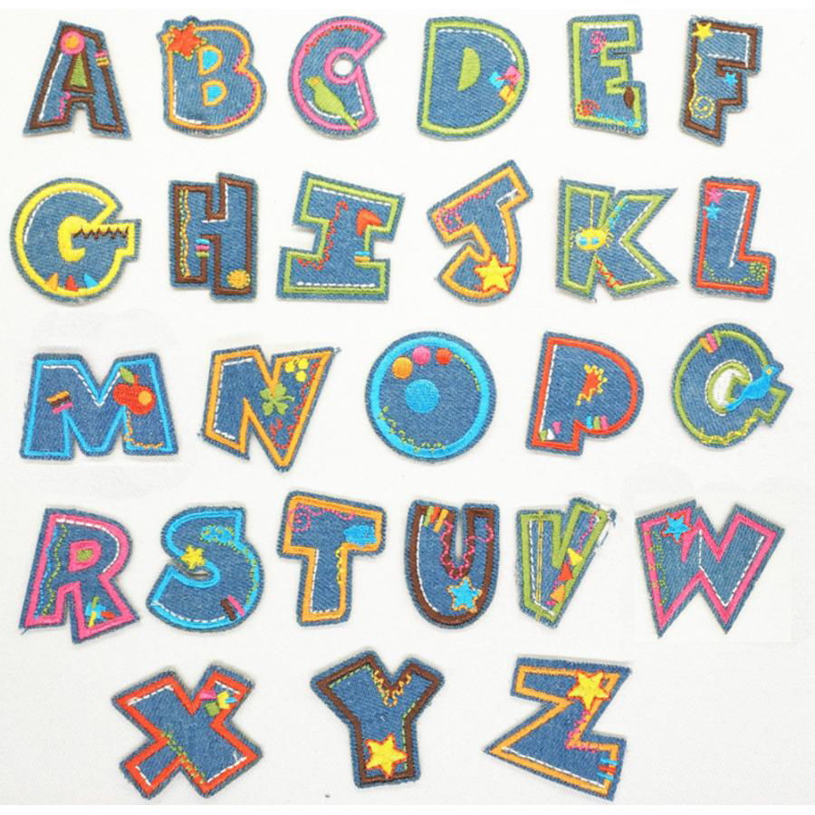 デニム風デザイン アルファベットワッペン アルファベットアップリケ イニシャルワッペン 文字アイロンワッペン