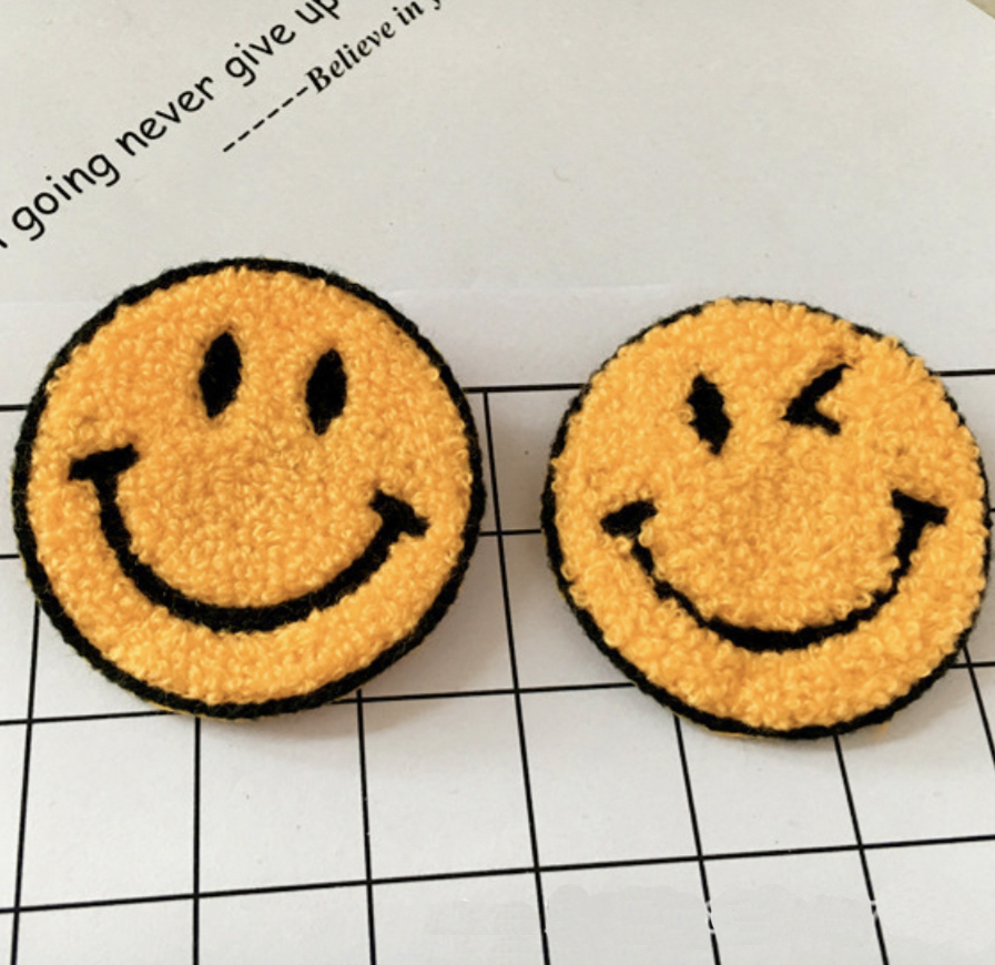 ニコちゃんパイル地ワッペン スマイルワッペン 刺繍 アップリケ モコモコワッペン