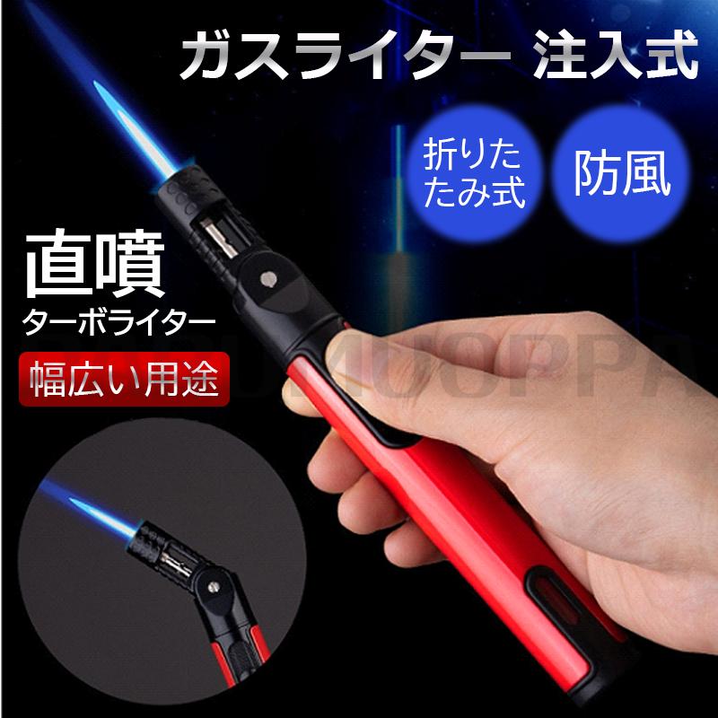 即納 ガスライター 注入式 ジェットライター 防風 充填式 直噴ターボライター 折りたたみ式 炎調整可能 多機能 幅広い用途 アウトドア用 BBQ(ガスなし)