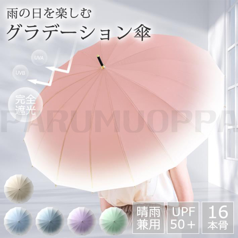 傘 レディース 晴雨兼用 16本骨 グラデーション パステル ワンタッチ ジャンプ式 雨傘 長傘 和風傘 おしゃれ かわいい 大きめ 軽量 きれいめ 上品 和風 無地