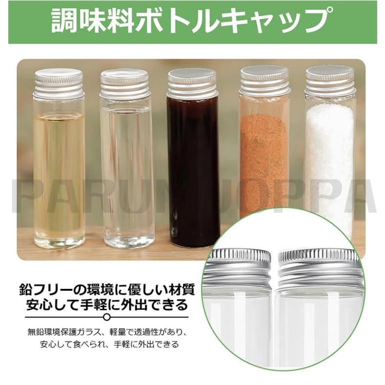 【液漏れの心配なくスパイスボトル】10本の調味料入れボトルは、砂糖、塩、黒胡椒、胡椒、唐辛子、七味などの調味料をしっかり収納できます。錆びない蓋と密閉性の高いフタで、ハーブを長く保存できます。
