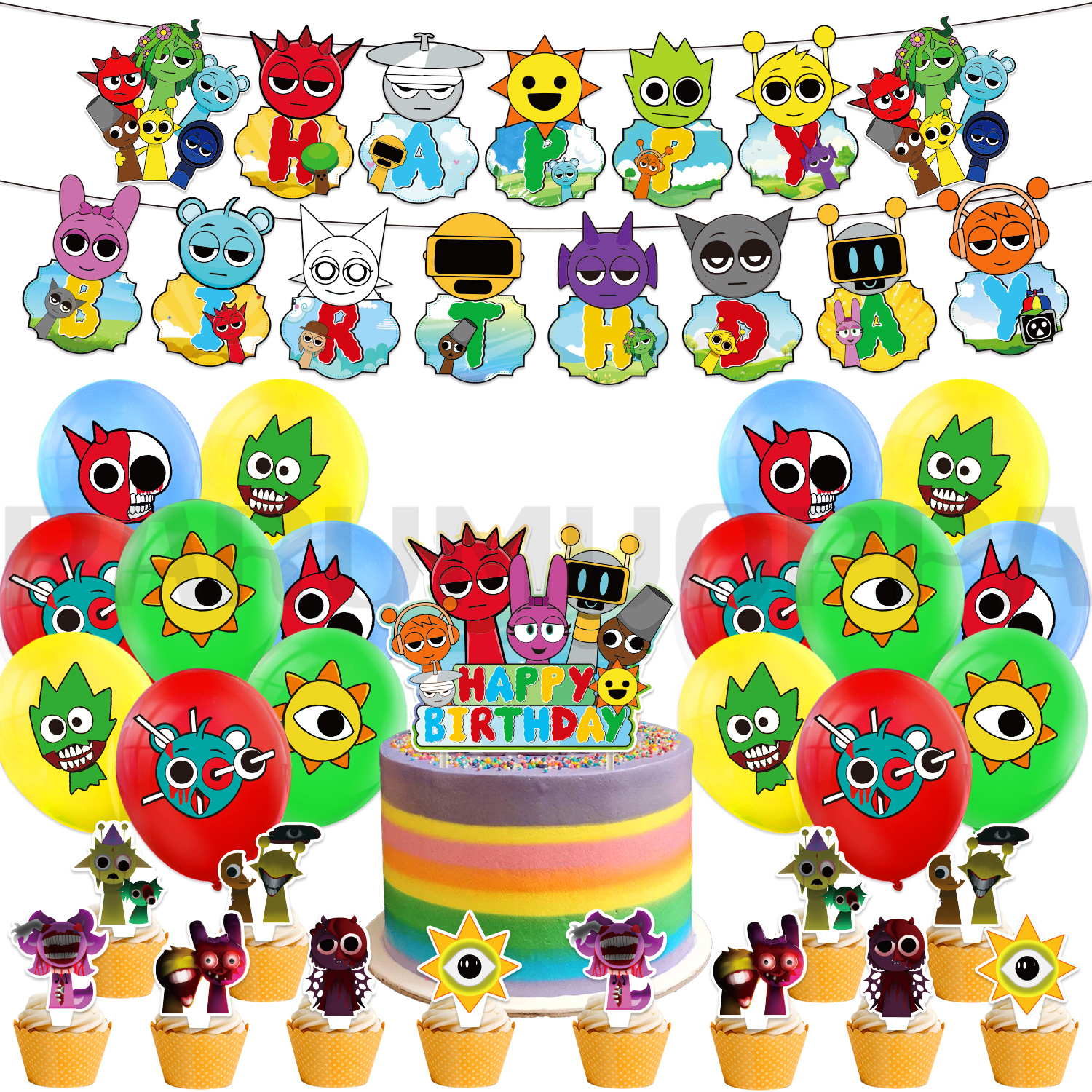 スプランキー 誕生日 飾り付け バルーンセット sprunki plush バースデー セット HAPPY BIRTHDAY 誕生日 風船 飾り 誕生日飾り 男の子 女の子人気ゲーム キッズ
